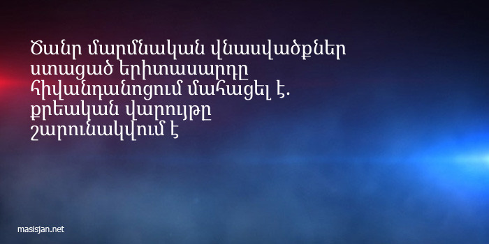 Սեպտեմբերի 5-ի ժամը 22.15-ին ՆԳՆ ոստիկանության Արարատի մարզի օպերատիվ կառավարման կենտրոն «Էրեբունի» բժշկական կենտրոնից հաղորդում էր ստացվել, որ դանակահարության ...