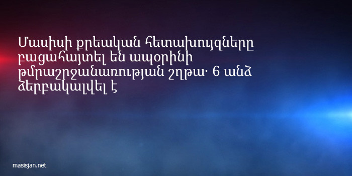 Մասիսի քրեական հետախույզները բացահայտել են ապօրինի թմրաշրջանառության շղթա․ 6 անձ ձերբակալվել է: ` Ծանուցում. Ենթադրյալ հանցանքի մեջ կասկածվողը կամ մեղադրվողը հա...