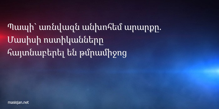 Հուլիսի 9-ին, ժամը 22.05-ին, հիվանդանոցից ոստիկանության Մասիսի բաժին հաղորդում էր ստացվել, որ ծակած-կտրած վերքերով բուժօգնության է տեղափոխվել Արարատի մարզի Դաշտ...